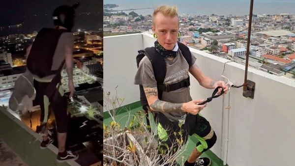 Nathy Odinson est monté en haut d'une tour haute de 29 étages pour faire un saut en parachute.