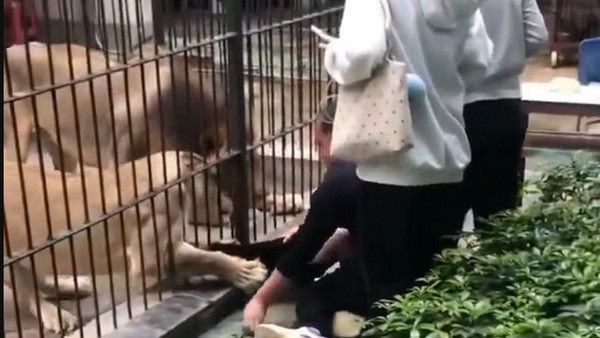 The moment a lion grabbed a little girl's trousers through the fence at a zoo in China. Luckily, her dad was quick enough to save her. pic.twitter.com/YJXsC3X1Sy